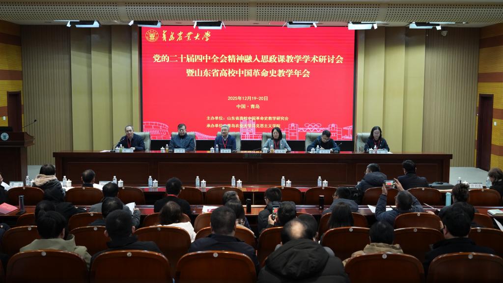 12月20日,由山东省高校中国革命史教学研究会主办,青岛农业大学马克思主义学院承办的“党的二十届四中全会精神融入思政课教学学术研讨会暨山东省高校中国革命史教学年会”在青岛农业大学顺利召开。马克思主义学院陈国庆教授、新时代国企党建协同创新中心成员李璐博士等一行七人受邀参加会议。