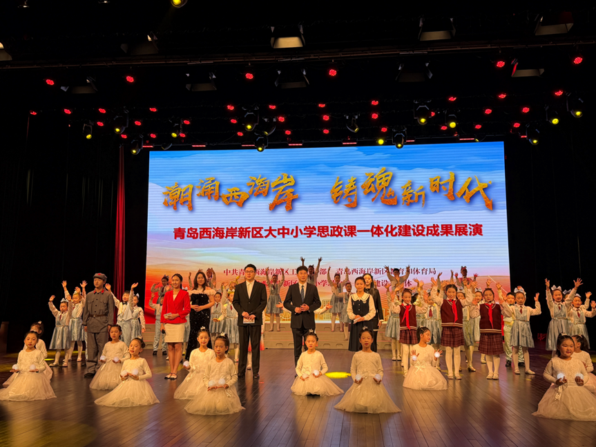 成果展演以“潮涌西海岸 铸魂新时代”主题潮起·风帆劲”“朋辈·共成长”“山海·新征程三个篇章层层递进,各学段师生协同演绎,先后呈现诗歌朗诵、红色舞台剧、情景宣讲、思政情景剧等形式多样的精彩节目,生动诠释新区大中小学思政课一体化建设循序渐进、螺旋上升的育人理念展现了西海岸新区思政教育一体化的实践成效与创新活力。
