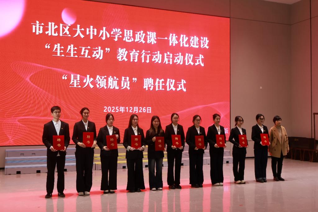仪式上,翟春燕为“星火领航员”代表颁发聘书。接下来,这支年轻的“星火领航员”队伍,将以饱满的热情、扎实的理论素养和务实的行动投入到思政育人实践中,为打通大中小学思政课一体化建设的“最后一公里”注入青年力量。