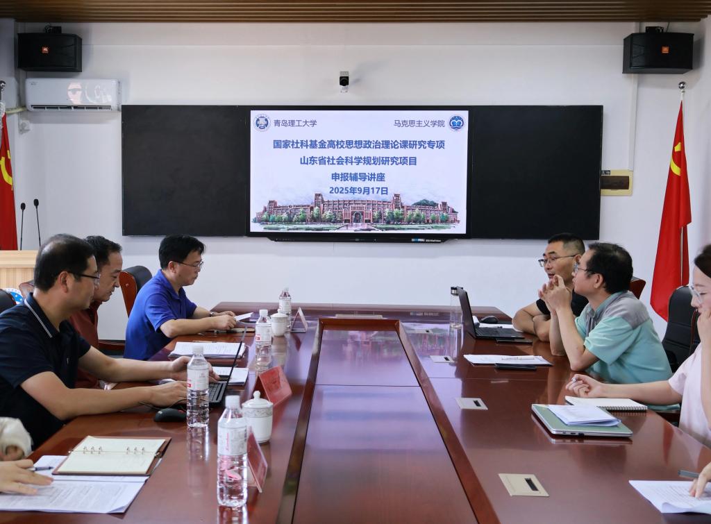 为助力教师把握课题申报要点、提升申报质量,推动学院科研工作与学科建设发展,9月17日下午,马克思主义学院于主教学楼A310会议室召开山东省社会科学规划研究项目辅导讲座。本次会议特邀曲阜师范大学马克思主义学院副院长、博士生导师刘宝杰教授,曲阜师范大学马克思主义学院博士生导师聂家华教授担任主讲,青岛理工大学马克思主义学院院长华章琳主持,院长助理王悦佳及学院科研骨干教师代表参加。