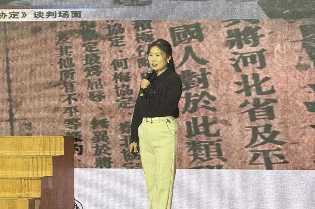 赛前,马克思主义学院习近平新时代中国特色社会主义思想概论教研室教师宋彦葵围绕“一二·九”运动的历史渊源与精神内核,为学生带来了一堂鲜活的爱国主义思政微课。从民族危亡的时代背景,到青年学子的救亡呐喊,再到运动承载的爱国情怀,她的讲解让师生们对这场伟大的爱国运动有了更深刻的理解,也为合唱表演注入精神力量。