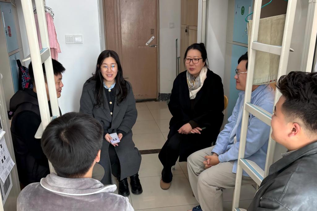 走访中,学院领导与同学们围坐交流,围绕学术研究、工作求职等方面开展精准化、个性化指导。对于高年级学生,学院领导重点了解升学备考或就业进展,细致询问职业规划与发展诉求,并结合行业趋势给出建议。对于低年级学生,老师们则着重关心学习状态、生活适应等问题,引导大家合理安排时间、优化学习方法,在打牢专业基础的同时提升综合素养。